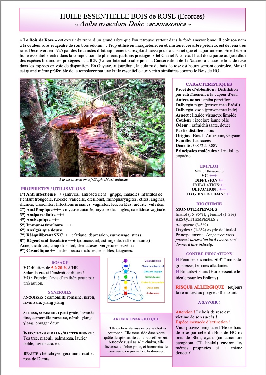 Fiche résumée Bois de Rose, format pdf à imprimer vous même