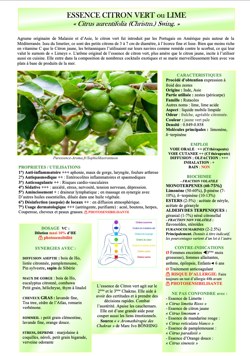 Fiche résumée Citron vert ou Lime, format pdf à imprimer vous même