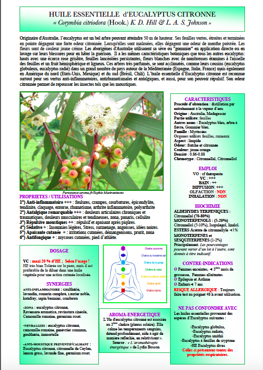 Fiche résumée Eucalytus citronné, format pdf à imprimer vous même