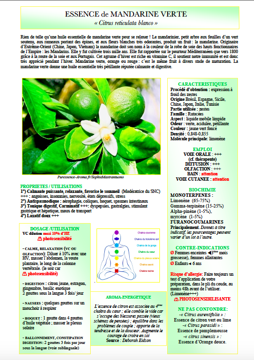 Fiche résumée Mandarine verte, format pdf à imprimer vous même