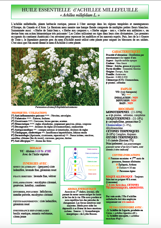Fiche résumée Achillée Millefeuille, format pdf à imprimer vous même