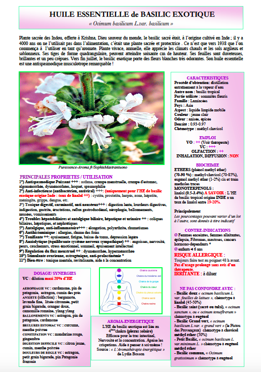 Fiche résumée Basilic exotique, format pdf à imprimer vous même