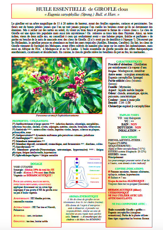 Fiche résumée Girofle clous, format pdf à imprimer vous même