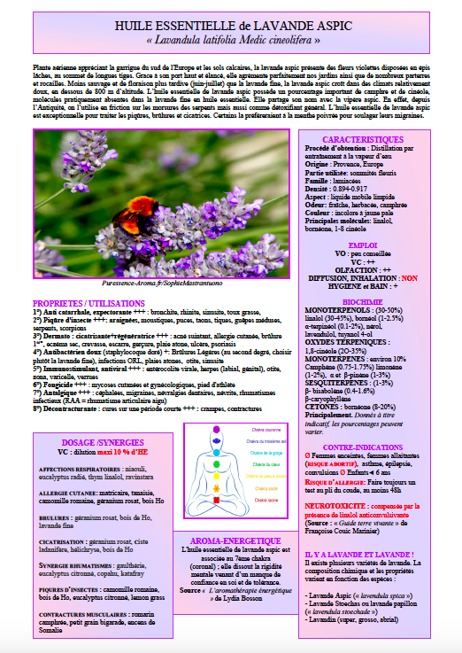 Fiche résumée Lavande Aspic, format pdf à imprimer vous même