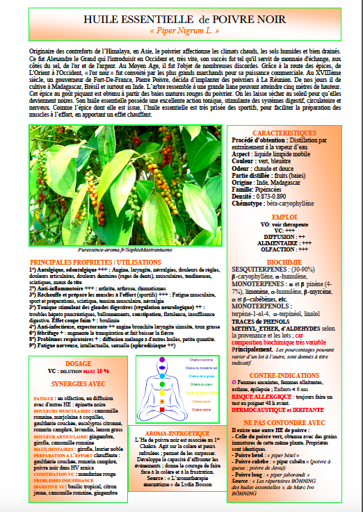 Fiche résumée Poivre noir, format pdf à imprimer vous même