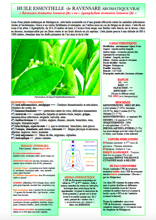 Fiche résumée Ravensare, format pdf à imprimer vous même
