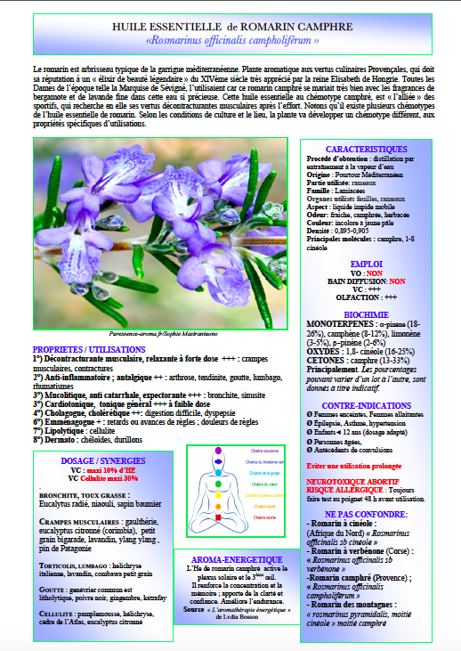 Fiche résumée Romarin camphré format pdf à imprimer vous même