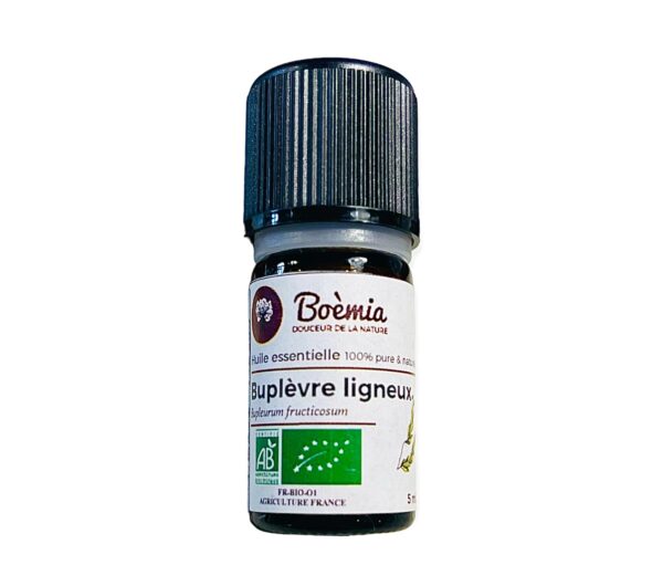 Le buplèvre ligneux est un arbrisseau pouvant atteindre 2,5 m de hauteur au maximum. Il est une des rares ombellifères à avoir un port arbustif avec un feuillage dense, très aromatique lorsqu’on le froisse. En effet ses feuilles alternes et coriaces sont d’un vert brillant sur le dessus mais vert plus terne dessous. Des fleurs jaunes en ombelles, dès le mois de mai, surmontent cette grande architecture végétale. Ce végétal apprécie les sols calcaires que l’on peut avoir en France (Corse), Italie et Portugal. Pour le trouver il faut cherchez des terrains à sa mesure tels la garrigue, le maquis et les coteaux secs et arides. Son huile essentielle est peu connue, pourtant le végétal n’est pas rare ! Elle a des propriétés remarquables pour les problèmes musculo-articulaires ainsi que pour se désintoxiquer de la cigarette !