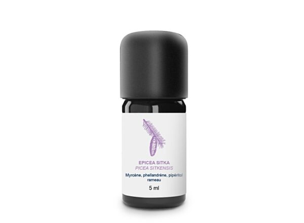L’Épicéa sitka est un conifère de la famille des Pinacées pouvant atteindre 30 mètres de haut. Originaire de la côte Ouest Américaine, d’Alaska et du Canada, Épicéa Sitka a été introduit au XIXème siècle dans les parcs, et utilisé après la seconde guerre mondiale comme essence de reboisement, particulièrement dans le Finistère et les Côtes d’Armor. Le bois de l’Épicéa sitka est utilisé en menuiserie ou en papeterie. Ses rameaux sont aussi utilisés pour en extraire l’Huile Essentielle. L’huile essentielle d’épicéa de Sitka est distillée artisanalement à basse température pour conserver au mieux ses propriétés thérapeutiques. C4est un véritable trésor de la nature. Reconnue pour ses nombreuses vertus, elle est utilisée depuis des siècles pour soulager les problèmes respiratoires et les affections hivernales. Puissant antalgique, cette huile essentielle a également des vertus anti-inflammatoires. Recommandée en cas de fatigue ou de stress, elle agit comme un véritable tonique pour le corps et l’esprit. Elle permet de lutter contre les états dépressifs et de retrouver un bien-être général. On ressent de suite les sensations de verticalité, de redressement, autant que d’ancrage. Elle aide à gérer les peurs. Transmet force, courage et confiance pour faire face aux aléas de la vie. Utilisée dans votre maison ou votre bureau, elle aide à créer une atmosphère saine et vivifiante, tout en apportant un sentiment de calme et de relaxation.