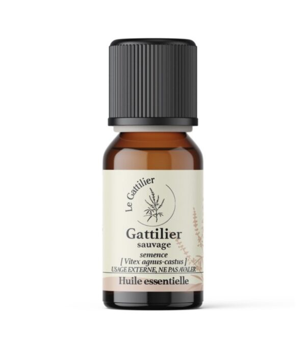Petit arbuste originaire des Balkans, Turquie, Crète, le gattilier était bien connu des anciens Grecs : Hippocrate  mais surtout Dioscoride, qui fut l’un des premiers à mentionner les propriétés emménagogues et galactogènes du gattilier. Le gattilier porte des feuilles aux étroites folioles elliptiques dont la face inférieure est argentée. Les fleurs, couleur lilas, s’organisent en panicules lâches très parfumés. Les fruits sont des drupes grisâtres au parfum épicé. A la fois animal et floral, il est proche de l’odeur du cuir, du poivre et du citron. En France, on le rencontre surtout comme espèce ornementale dans parcs et jardins. Cette plante parfois appelée simplement Vitex ou “Agneau chaste”, comme son huile essentielle, a des propriétés harmonisante hormonale très utiles pour traiter les problèmes de cycle menstruel irréguliers ( par une action sur l’hypophyse) mais aussi pour la ménopause.