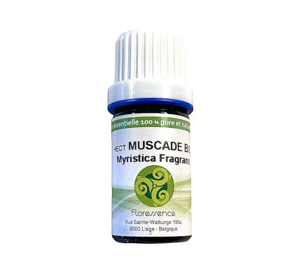 L’huile essentielle de muscade noix est issue d’une plante originaire des îles Moluques en Indonésie; elle donne deux épices : le Macis (l’arille) et la Noix de muscade (l’amande). Les Egyptiens utilisaient la noix de Muscade pour l’embaumement des momies. A la fin du Moyen-Age, elle faisait partie des épices les plus utilisées après le poivre, elle est connue pour ses propriétés digestives et stimulantes. Elle fut longtemps l’objet de convoitise en Europe car elle était considérée comme l’épice la plus chère. On la transportait alors dans une petite boîte en argent ou en bois avec une petite râpe. Elle était également brûlée dans les rues pour masquer les mauvaises odeurs.