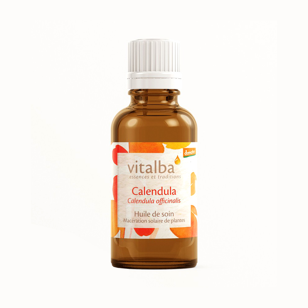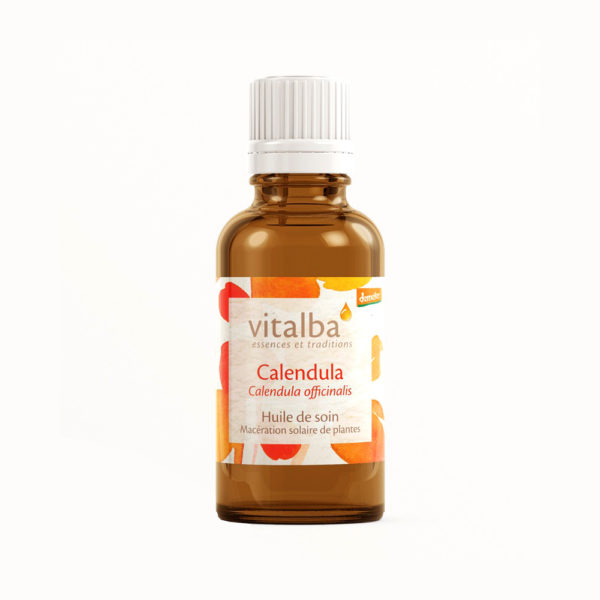 - Sommités fleuries de Calendula macérés dans l’huile d’Olive vierge qualité “demeter”