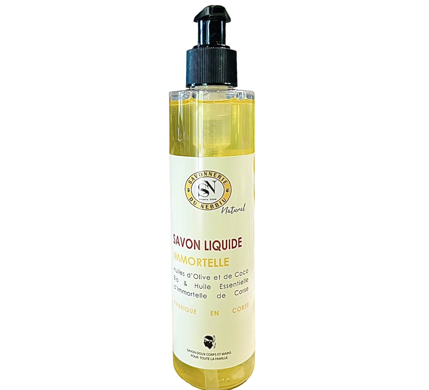 Ce savon liquide artisanal à l’immortelle Corse ne contient aucun conservateur. C’est un savon de très haute qualité aussi bien au niveau cosmétique qu’au niveau écologique. Très doux, il est idéalement utilisé pour le nettoyage des mains et la toilette du corps au quotidien. Il est très respectueux des peaux sensibles et convient à tous les types de peaux.